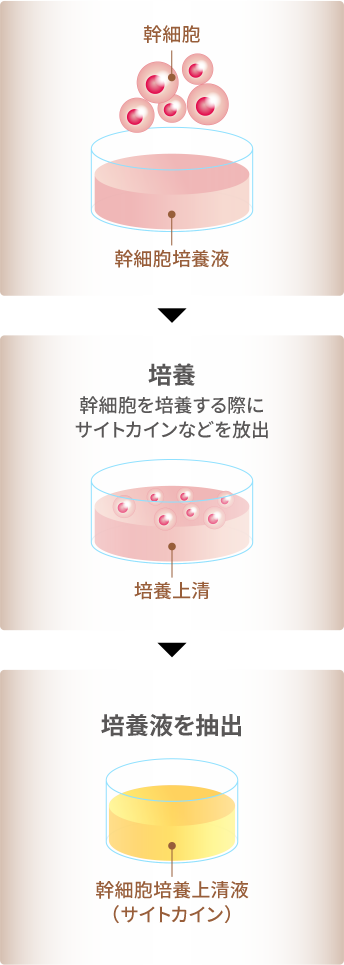 この幹細胞を体外で培養して遠心分離させ、培養液から細胞や不純物を取り除いた上澄みの部分が上清液(じょうせいえき)です。
